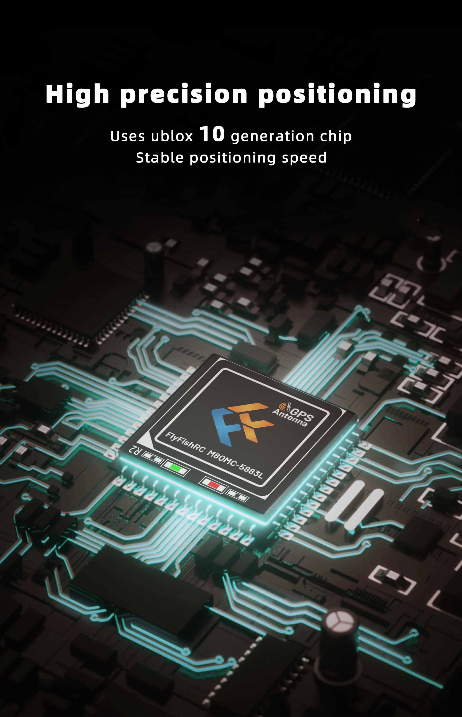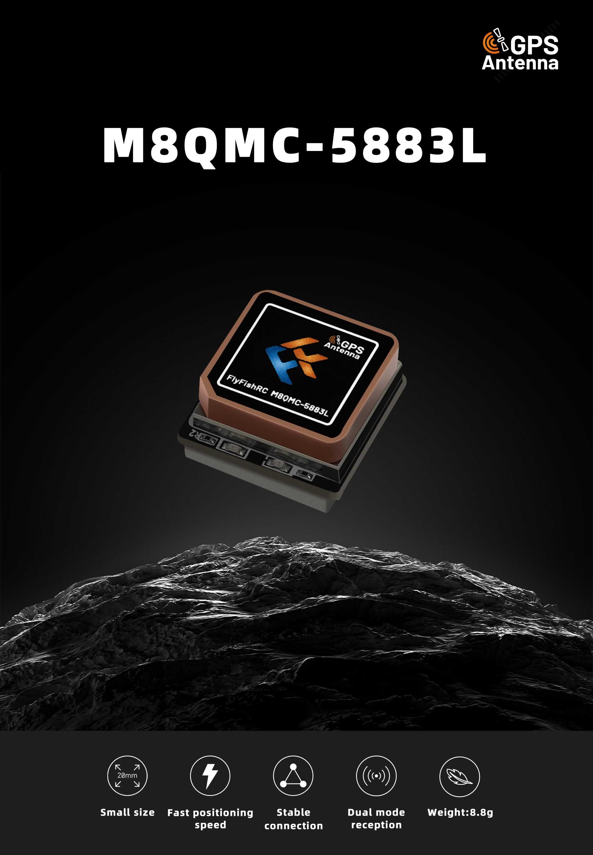 The FlyfishRC-M8QMC is a small size, fast positioning, easy-to-use GPS. It adopts 18*18mm RHCP ceramic patch antenna that provides excellent reception capability and a highly stable connectivity. The built-in QMC5883L high-precision magnetometer provides precise azimuth pointing, and the u-blox10 generation chip allows subtle altitude changes to be skipped for more stability. Ideal for use with FPV drones, multi-rotors, fixed wing and other model products.